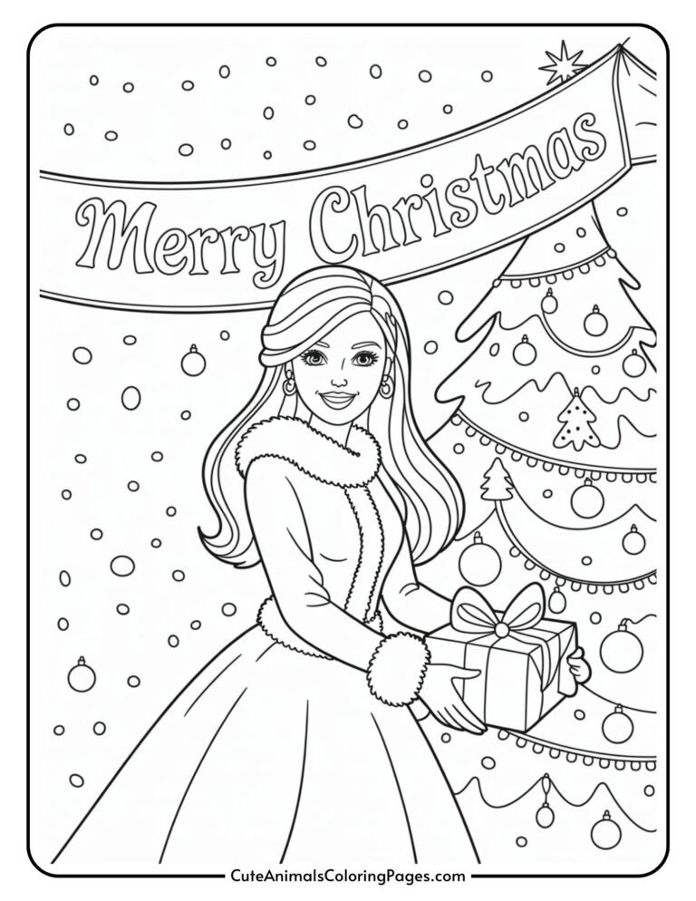 Christmas Barbie Coloring Pages (10 Pages To Color)