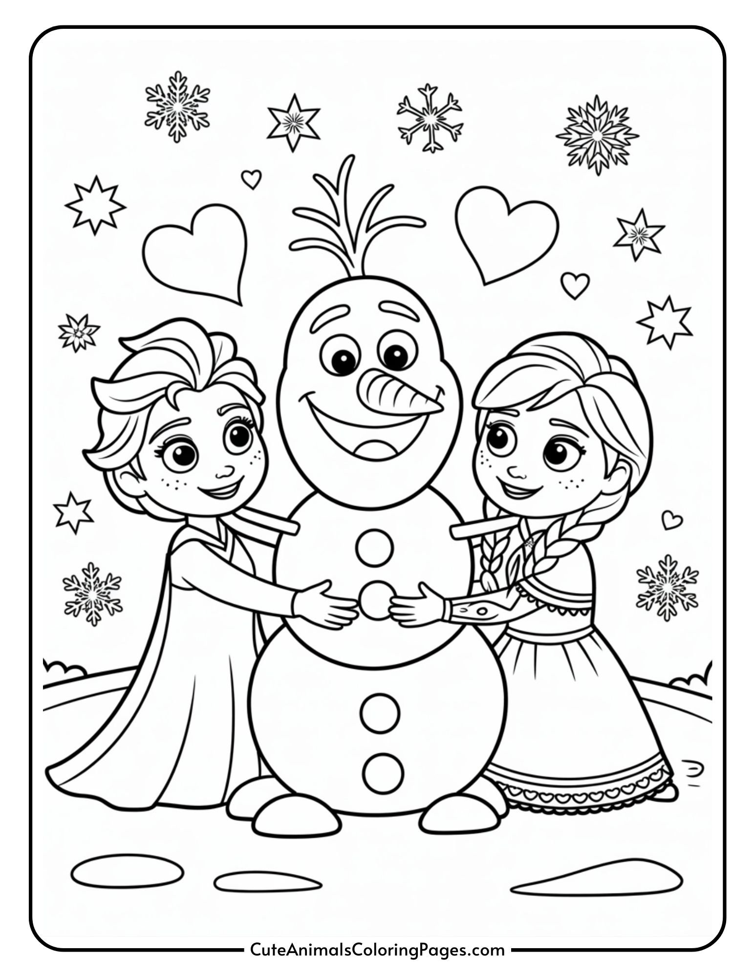 Heart-themed Disney pages for Valentine’s Day are easy because the theme is clear and the options are endless. Large hearts, patterned hearts, heart borders, and heart confetti give kids plenty of room to color without feeling overwhelmed!